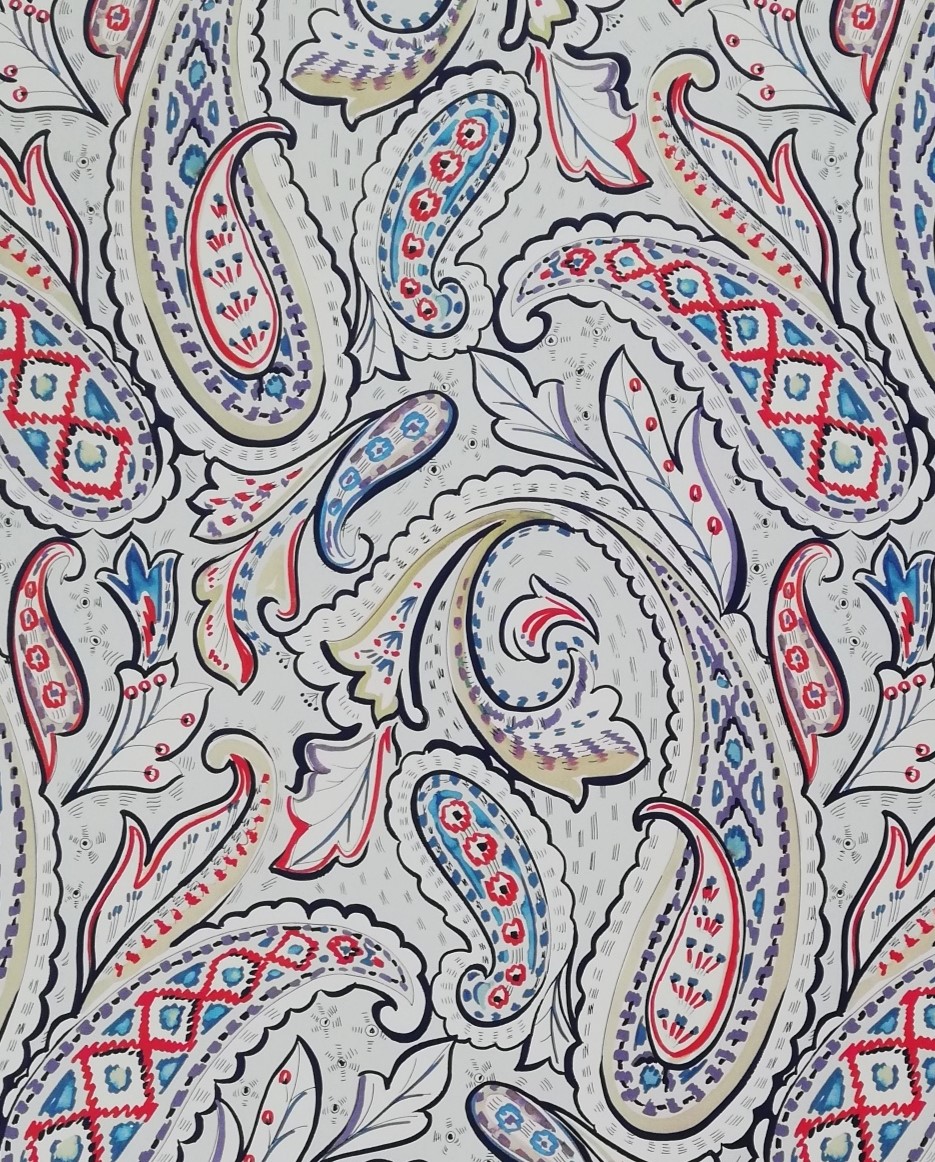 Printed on paper - A digital file in high resolution has been developed for Paisley design with the repeat 64x35 cm