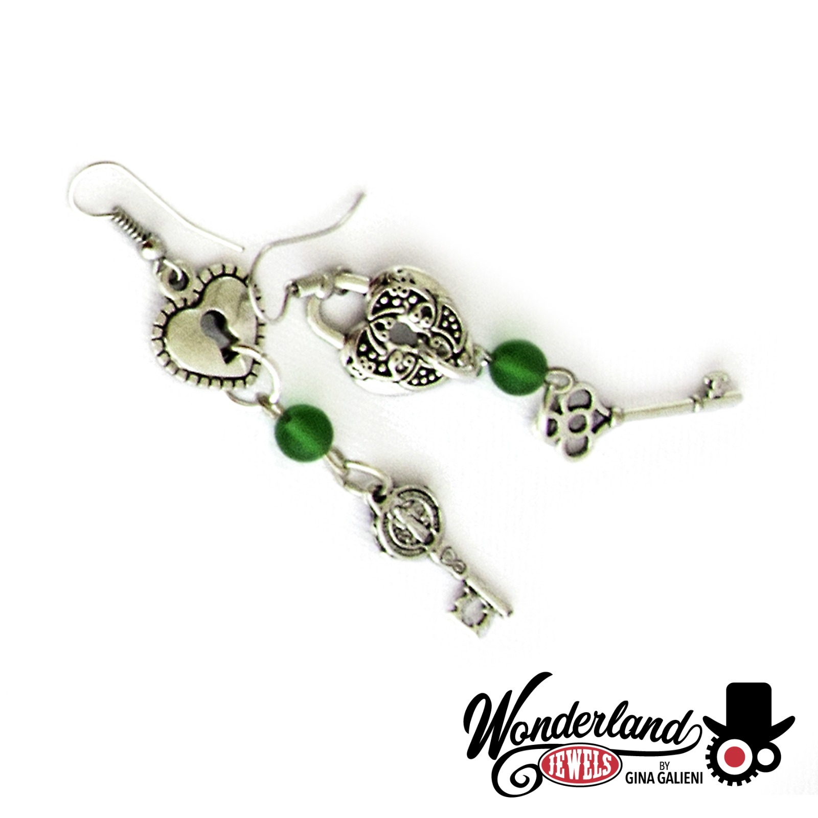 Earrings Steampunk silver & green