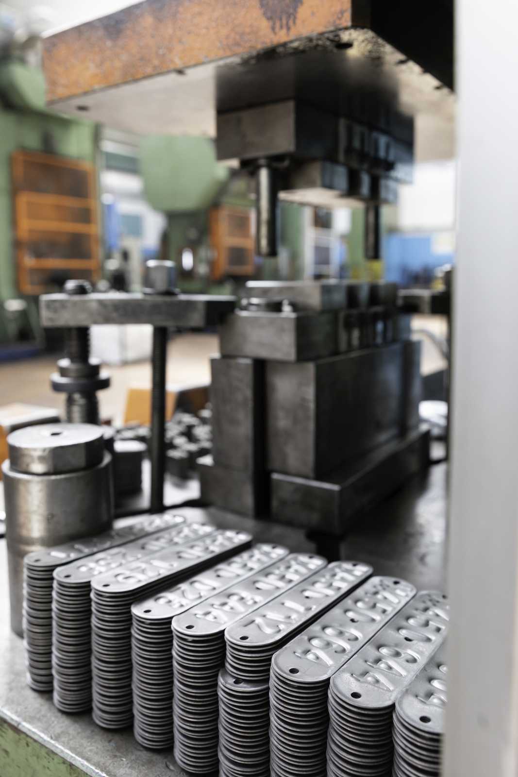 Identification plates for the railway sector are manufactured by coining using a progressive (step) die, a production process that ensures high dimensional accuracy, repeatability, and consistent quality, even for large production volumes. This technology allows the creation of sharp details, embossed or recessed markings, and perfectly defined edges.