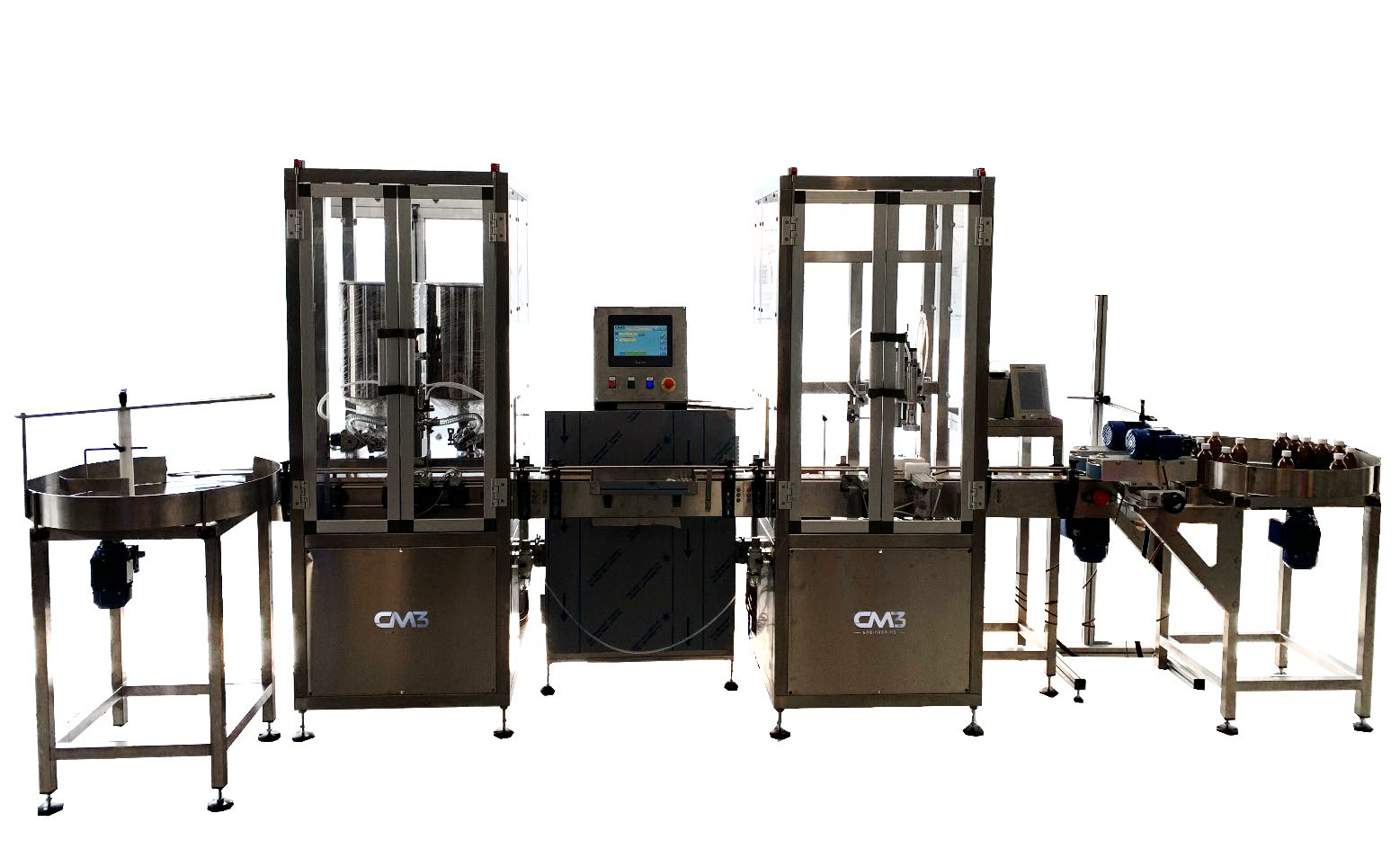 The CM3 Engineering EASY line represents the ideal solution for the dosing and capping automation process where the customer's need is to have a lean, versatile and small-sized plant to start or improve the production process of one or more products.