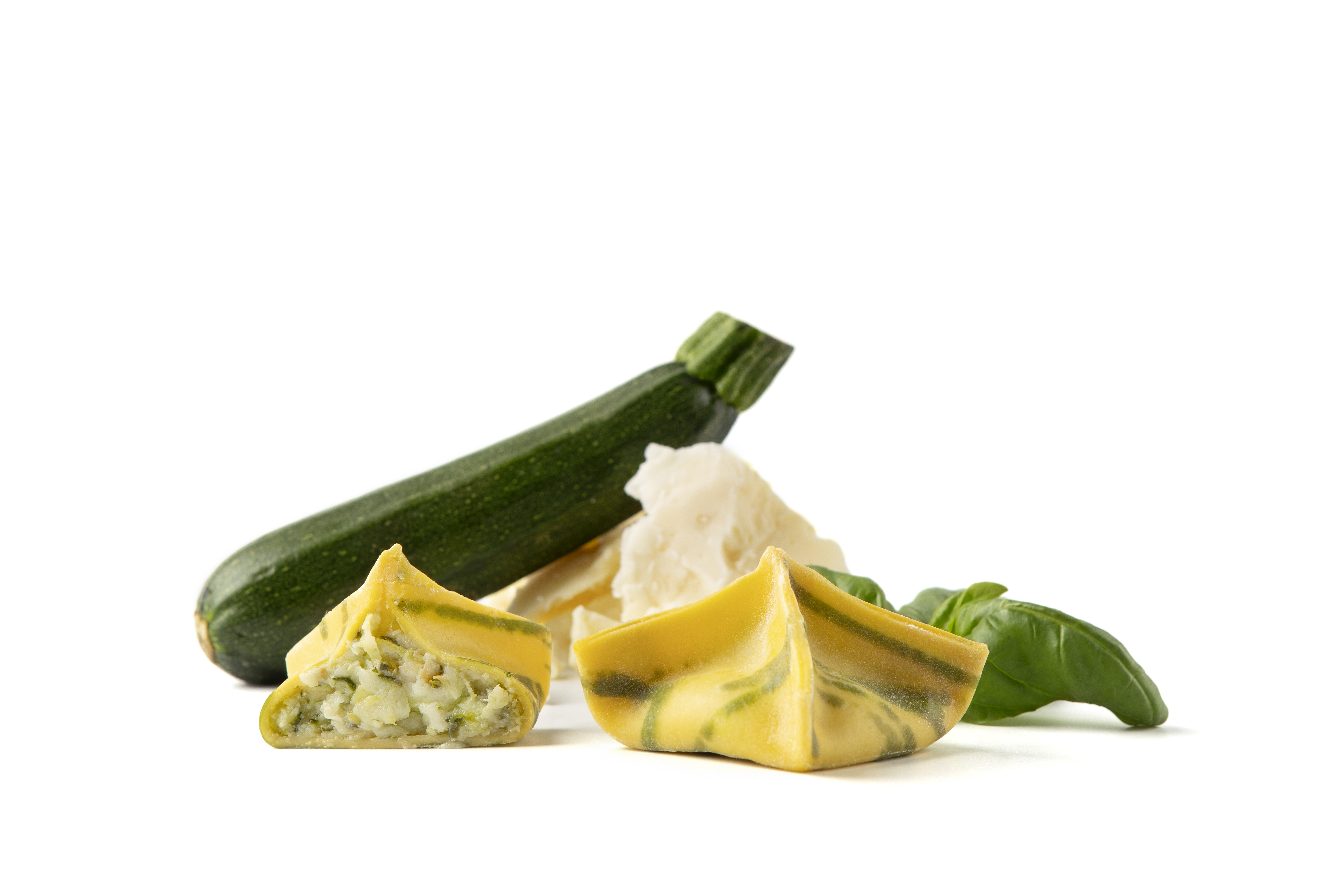 FAGOTTINO AT NERANO is a tortelloni filled with Zucchini cream and provolone cheese; with a unique shape, of our production, closed by hand with skill by our craftsmen. the Passion with which our pasta is worked can also be observed from these details such as the shape designed to fully savor the filling and the texture of the refined pasta.