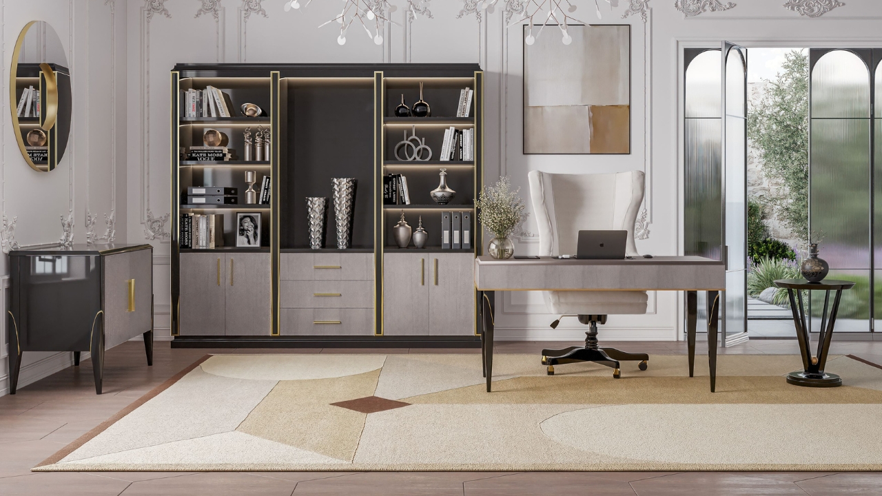 STUDIO PRIVÈ includes desks, seating, modular bookcases, and decorative accessories, thoughtfully designed to support both focus and moments of relaxation or informal interaction. It is a collection suited to those seeking an elegant, functional, and inspiring work environment.