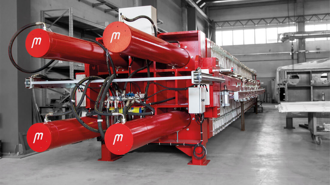 La filtropressa a piastre Matec (o filtro pressa) è realizzata per raggiungere i migliori risultati nella disidratazione dei fanghi industriali. Tutti i filtro pressa Matec sono studiate per poter essere utilizzate con tecnologia HPT (High Pressure Technology) in grado di lavorare sia a pressioni di esercizio comuni a tutte le filtropresse, 5-7 bar, sia ad alte pressioni prossime o superiori ai 16-21 bar. Questo è reso possibile grazie alla progettazione altamente specializzata delle nostre macchine ed all’utilizzo di componenti di altissima qualità e livello ingegneristico quali centraline e pistoni oleodinamici, strutture chassis sovradimensionate e in aggiunta pompe ad alta pressione Alfa Pompe.