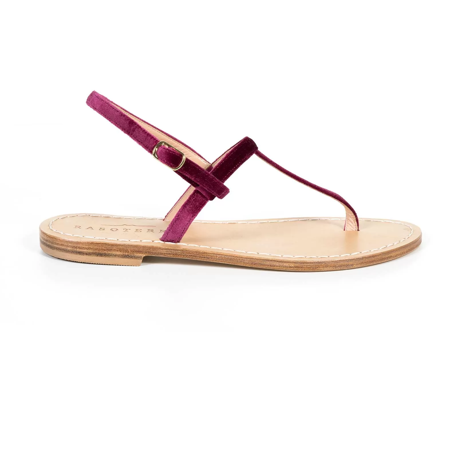 The Positano sandal is a thong-style sandal with a distinctive T-shape on top made of soft, fine velvet. This sandal also features an adjustable strap on the ankle with a buckle to allow you to adjust the width to your preference.