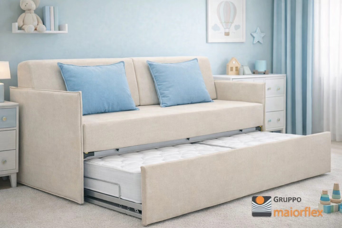 For over 30 years, we have been producing exclusive collections of mattresses, memory foam mattresses, pocket spring mattresses, latex mattresses, upholstered beds, reinforced storage beds, box springs with removable covers, sofas, sofa beds, sofas with removable covers, bed bases, wooden slatted bases, and beech wood bed bases, pillows, and furnishing accessories, designed to ensure maximum relaxation, comfort, and well-being for the whole family.