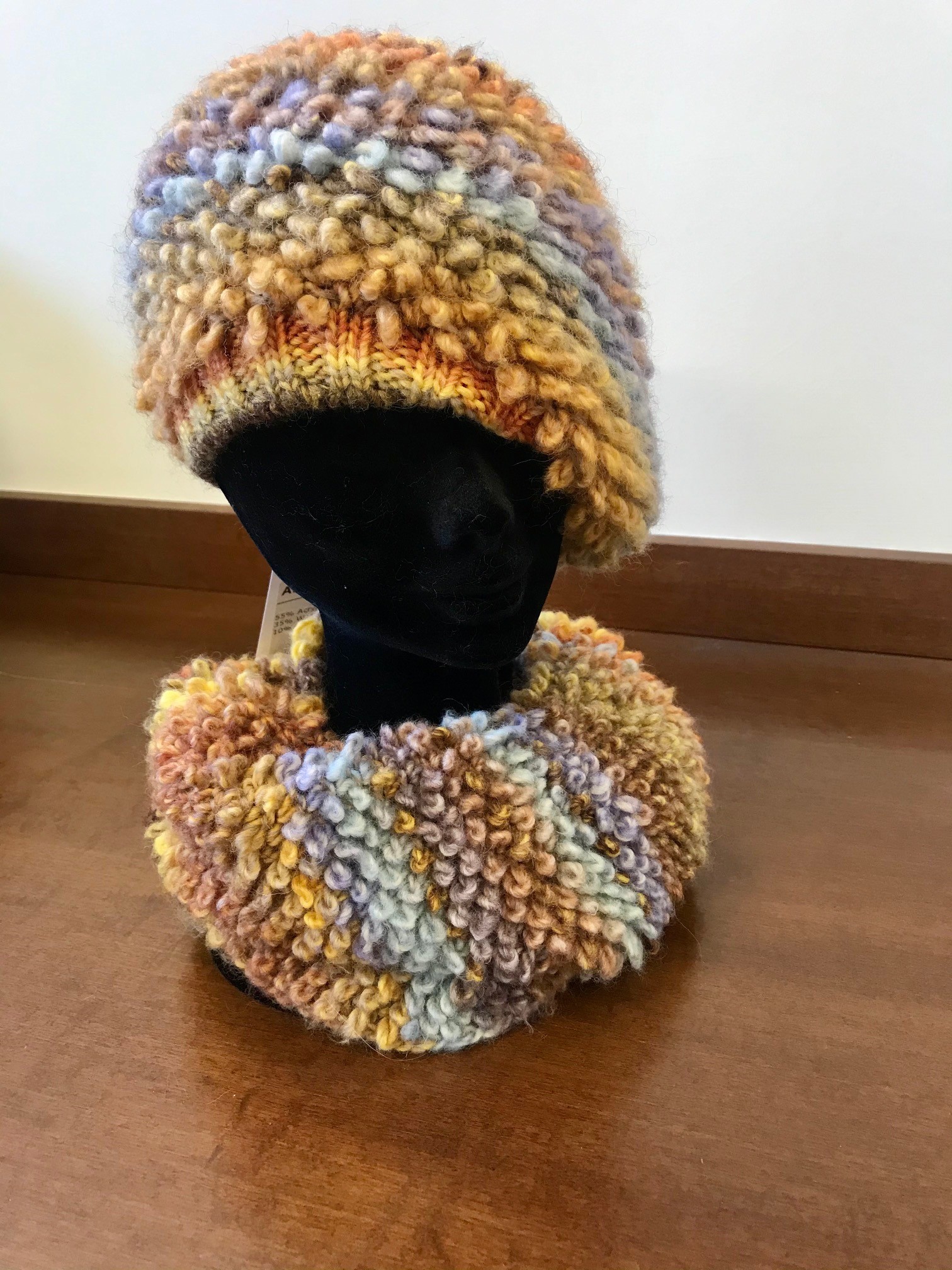 Knitted beret and Tube Collar in printed yarn