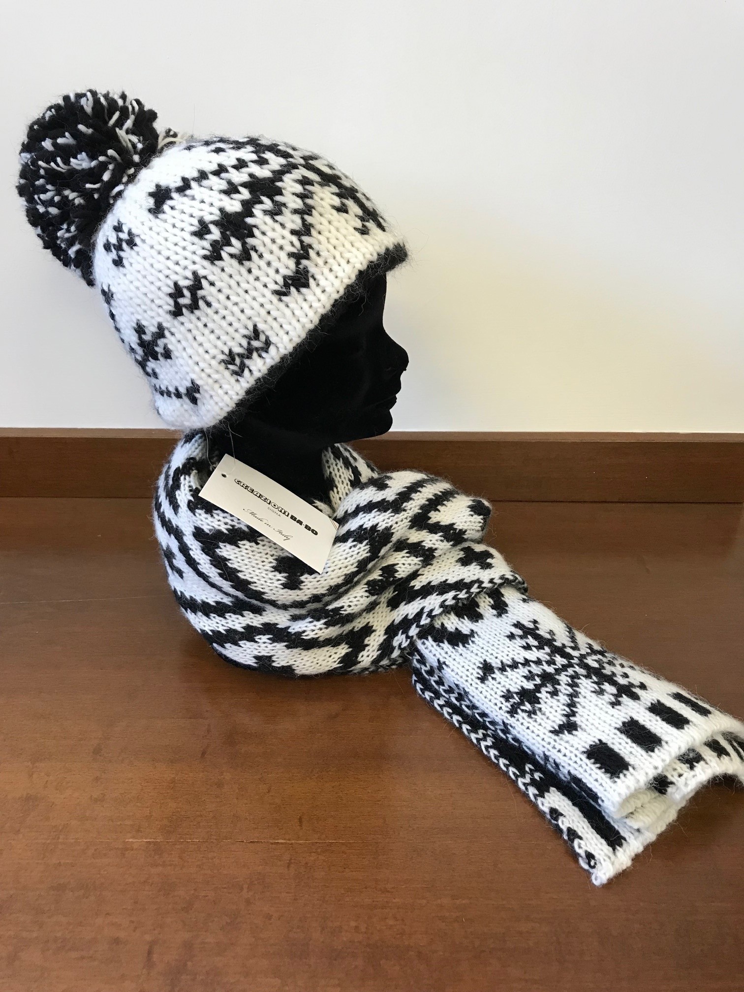 Knitted jacquard Beanie with yarn pom and Scarf