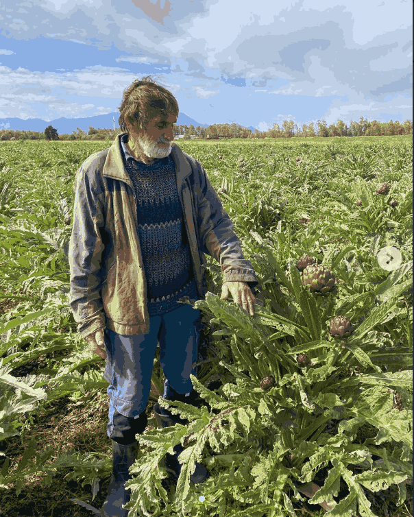 Travel to Sardinia meant catching up with Romualdo, who grows our Tema artichokes.