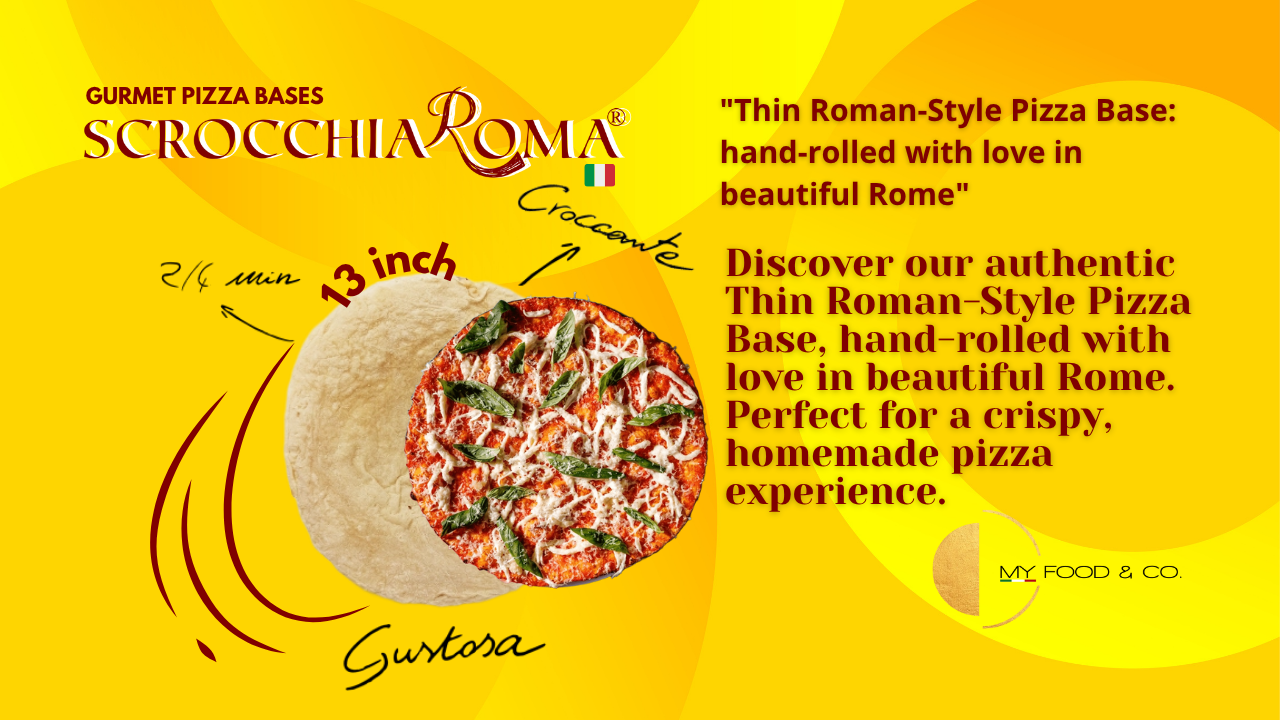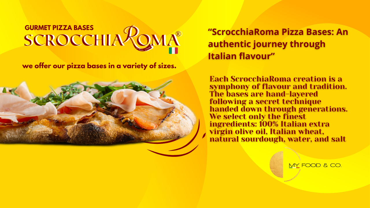 My Food & Co., a brand property of Oro24tartufi and ScrocchiaRoma Basi Pizza, embodies Italian food excellence, combining the heritage of truffle, the innovation of premium pizza bases, and the versatility of gourmet solutions for the global market. Our mission is to bring authentic Italian taste worldwide, offering premium products, controlled supply chains, and tailored services for professionals and discerning consumers.
