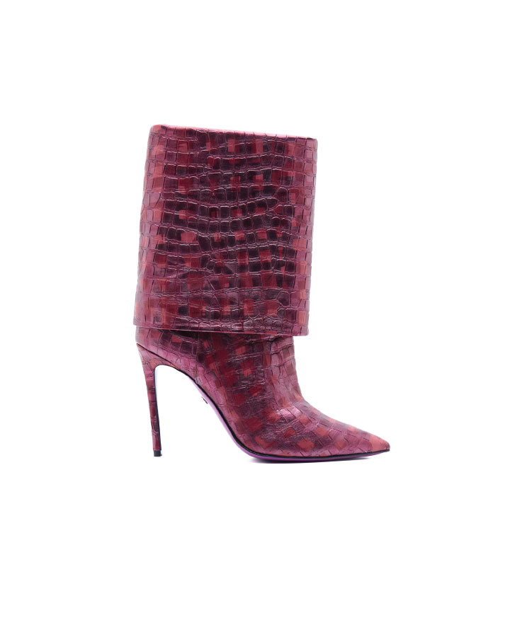 Decisive, elegant, and full of character: Leonor Napoli's burgundy crocodile-effect boots are designed for those who love bold, refined style. The crocodile-effect leather texture gives them a sophisticated allure, while the 105mm high heel slims the figure with femininity. The 100% leather sole ensures comfort and durability, making these boots ideal for everyday wear or special occasions during the winter season. A must-have for winter, in a warm and enveloping shade.
