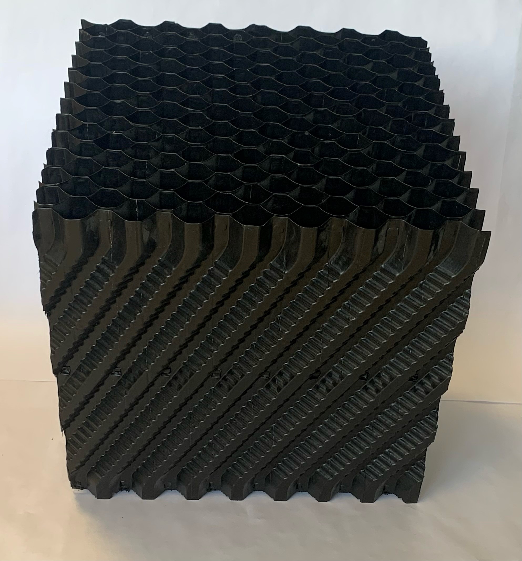 ENDEVION (COOLpack) fills are made primarily of polypropylene (more noble than traditional PVC, produced without the use of glues or chemicals, thus preventing the crystallization of the material over time, typical of PVC) and are designed to dramatically increase the contact surface between the warm water descending and the cooler air rising through the tower. This increased surface area allows for greater evaporation and, consequently, more effective cooling of the water.