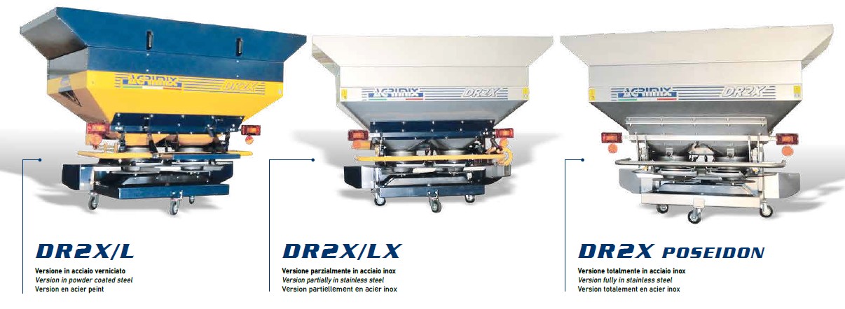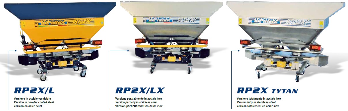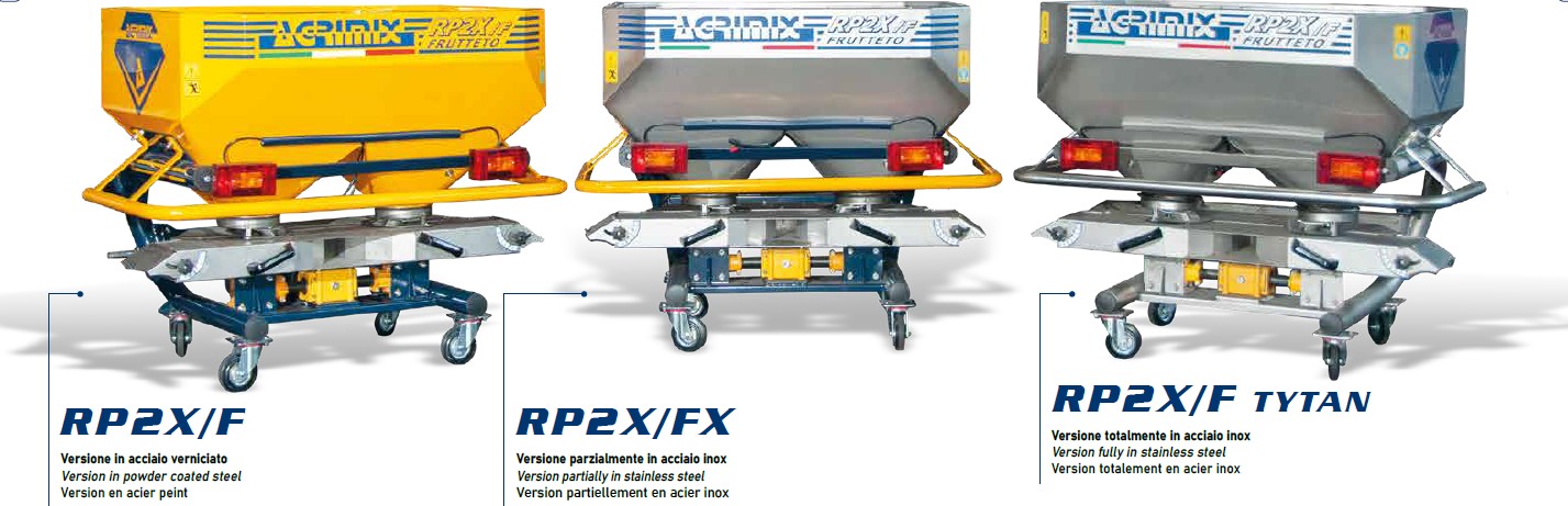 and full field spreading, with bilater conveyor fully in stainless steel for vineyard use, or alternative rear localiser for greenhouses .
