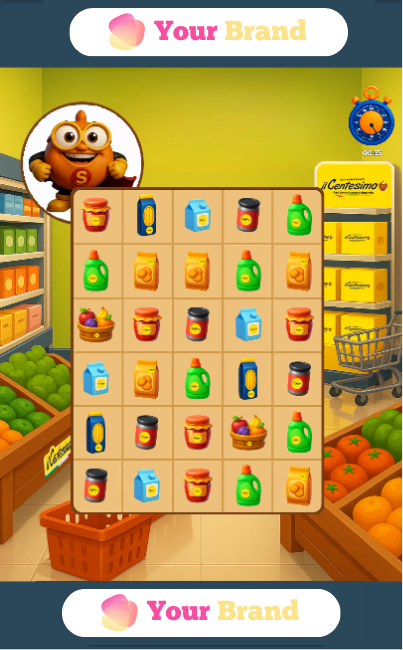 Match-3 Candy Crush style mobile game fully customizable with logos, features, settings, and brand-specific features. Users can interact with this playable ad and receive discounts and freebies to spend at physical stores.