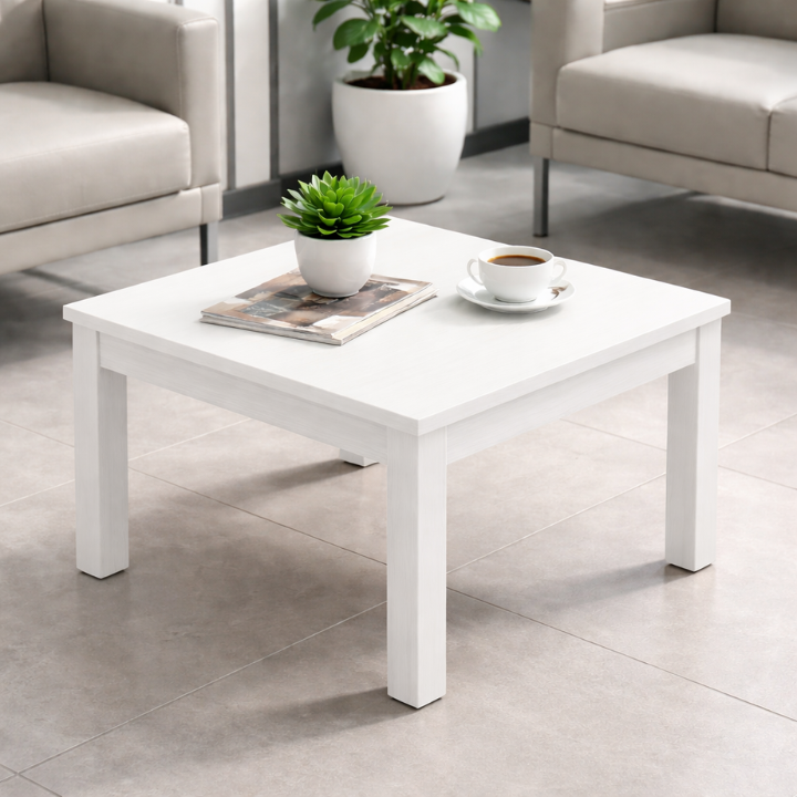 Low coffee table made entirely of melamine-coated chipboard, designed for professional use in work environments. The table guarantees stability, durability, and adequate functionality.