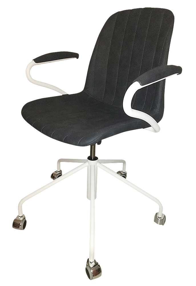 Wave is a chair for indoor use. The seat is covered with similar leather and is available with different color. The frames are chromed and white and are available with and without armrests. Swivel base is available with armrests and with white and black painted.