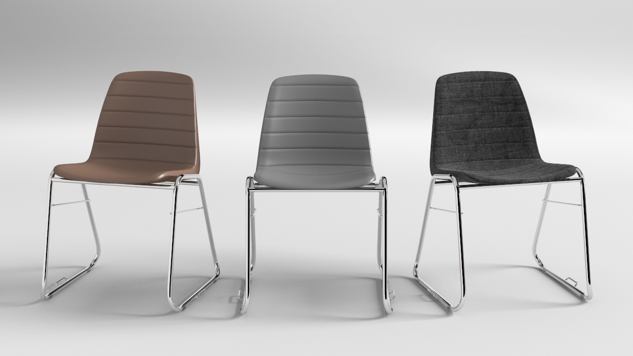 Asola is a chair for indoor use. The shell is available with basic colors,fireproof and no fireproof. Is available also with shell upholstered. The frames are chromed or painted and there are different models: with link, with armrests and also with writing tablet.