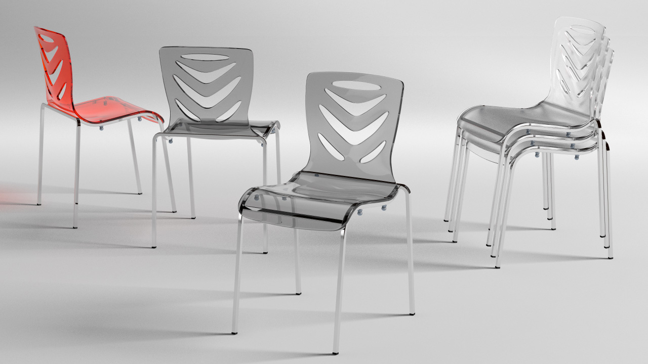Boomerang is a chair for indoor use. The seat is made in ''metacrilato'', available in different colors. The frames are chromed and available with 4 legs and sledge.