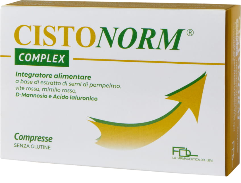 Cistonorm complex integrates in a single product the properties of the nutrients contained in Cistonorm (GSE, Vitis Vinifera, Cranberry) to support the physiological functionality of the urinary tract, with those of D-Mannose and low molecular weight hyaluronic acid. The synergistic action of these characterizing elements present in Cistonorm complex contributes to the general well-being of the urogenital system.