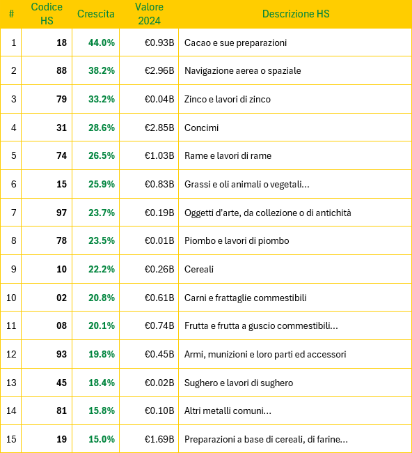 Top 15 Voci HS per Valore delle Importazioni 2024